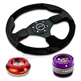 | ✚✚✚ NRG-SRK-110H-RD+012R-S+200PP, NRG Innovations 12.5" 320mm Black Leather Red Stitch Suede Grip Racing Steering Wheel Combo with 6 Hole Short Hub Adapter with Gen 2.0 Purple Quick Release Kit SRK-110H NRG Quick Release features many options that conventional ball-locking quick release system do not. It is specially engineered with raised sections to prevent the scratching and stretching of the hub while a self locking feature adds increased safety and functionality. Features racing styled for added style and look. Each unit is made from the highest quality aircraft grade aluminum and is anodized for maximum durability and finish.