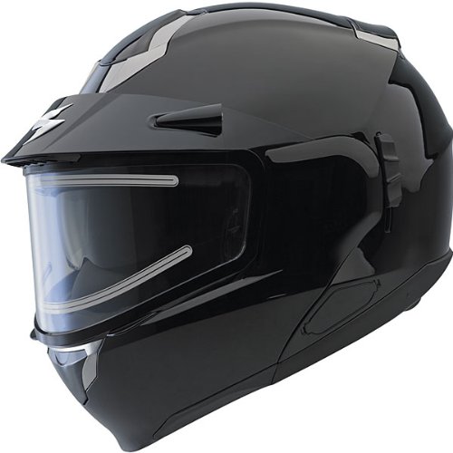 SCORPION EXO-900 SR EL ELECTRIC SNOWMOBILE HELMET BLACK XL?EXO 900 Snow-Ready helmet features a custom shield and internal breath box for the ultimate fog-free vision. The shield features EverClear® anti-fog coating and ventilaton intake / exhaust ports. EL (electric) - This is our premier shield system. A power cord connects the shield to your snowmobiles power source heating the shield to avoid fogging. The EXO-900 Transformer Helmet gives you the freedom to choose between Full- and Open-Face configurations with the added benefits of detachable peak visor and dropdown sun visor. This makes the Scorpion EXO-900 truly unique and gives you options that no other modular helmet can offer. In seconds and with no tools, you can convert your full-face helmet to an open-face version to meet the changing riding conditions or style preference. AirFitTM helmet pump air inflation system for a custom fit. Cheek pad and neck roll adjustment system for improved fit and wind noise reduction EverClear no-fog shield system KwikWick washable wicking liner Retractable SpeedView no-fog internal sun visor Toggle Aero-tuned vent system Polycarbonate composite shell DOT / ECE approved